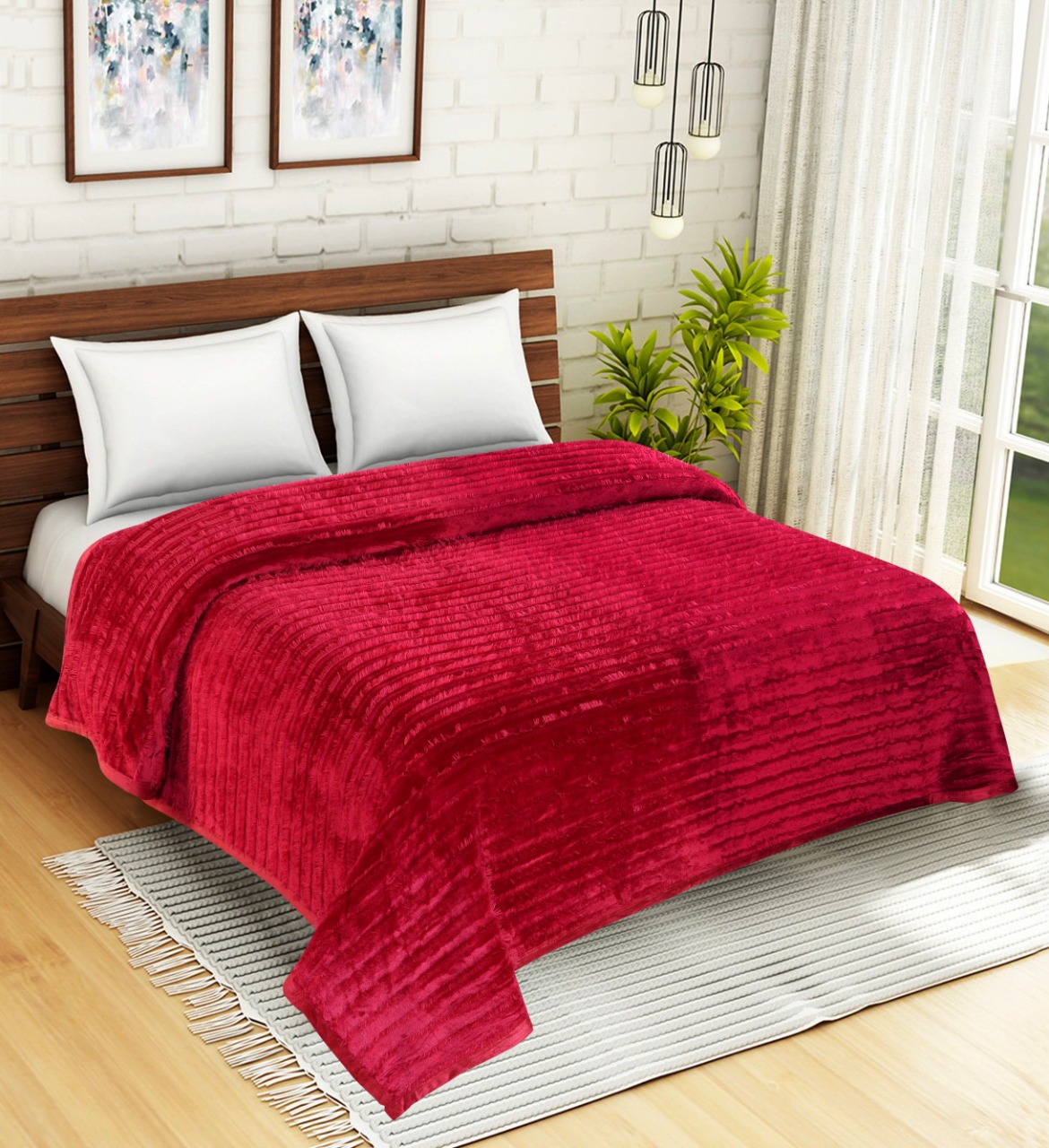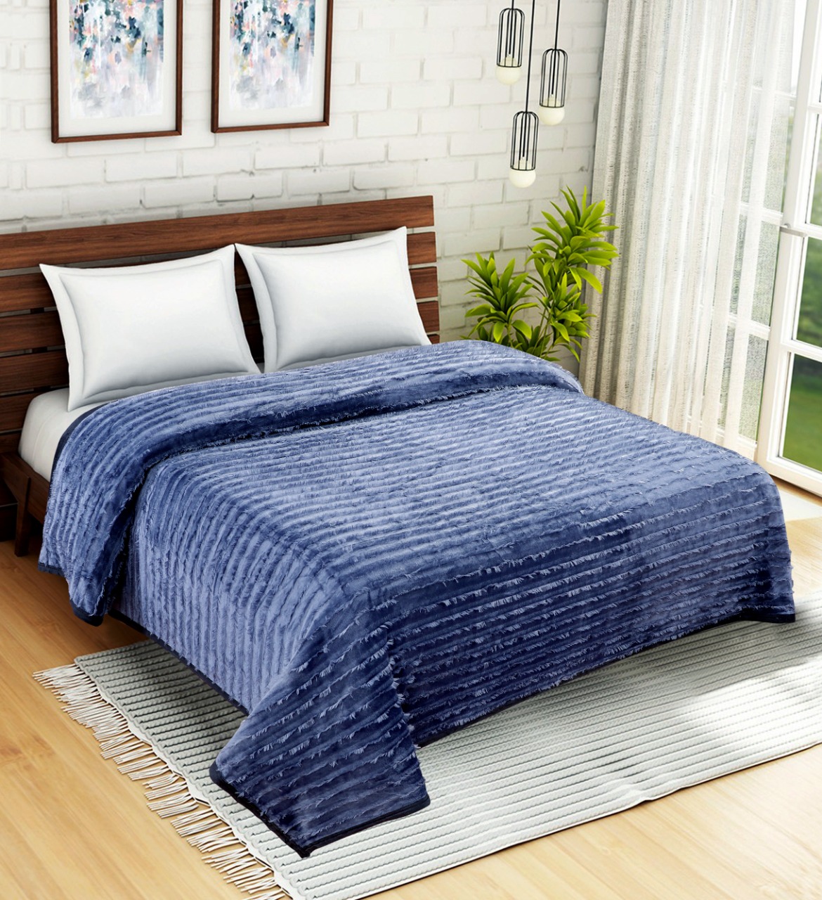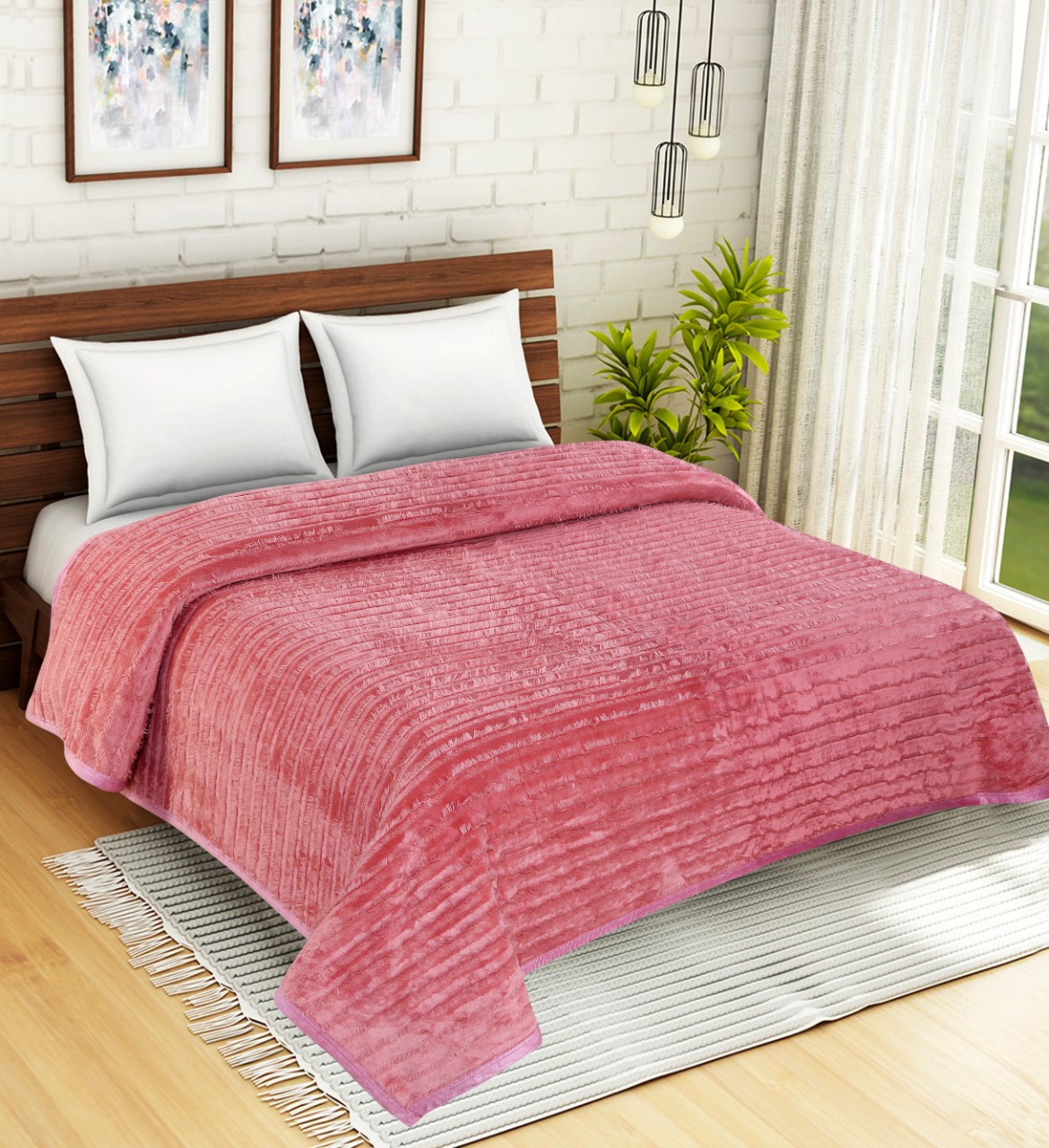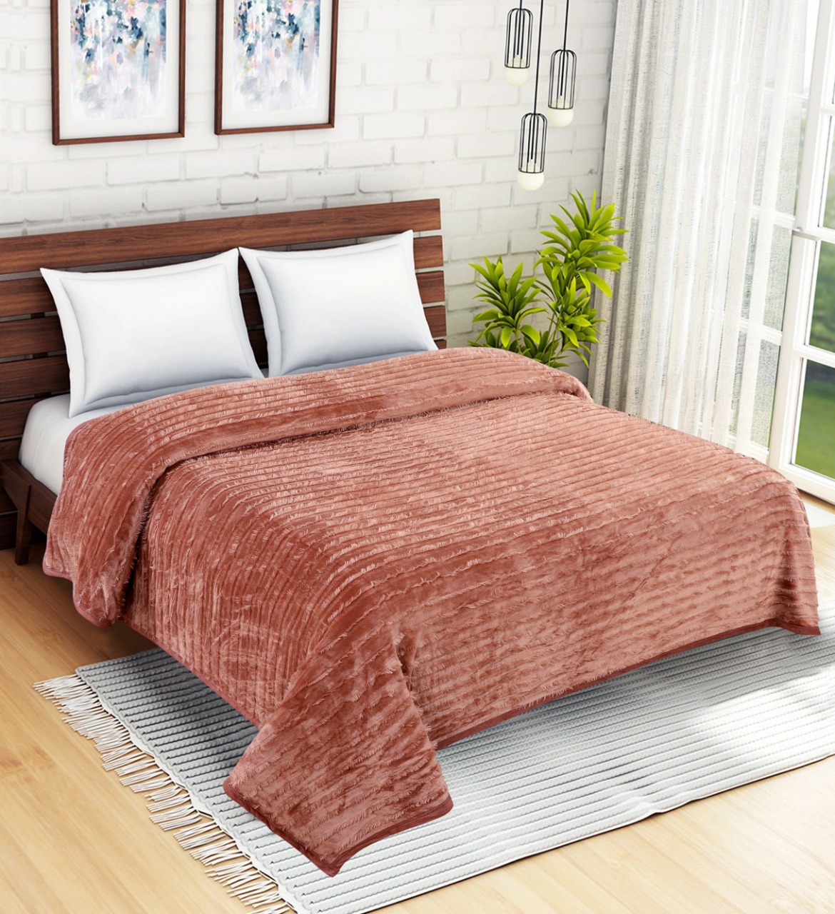DOUBLE BED FEATHER LOOK BLANKET