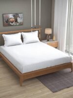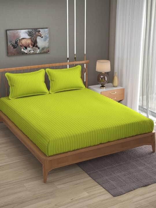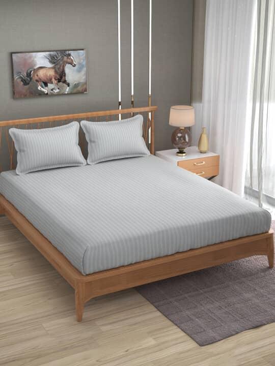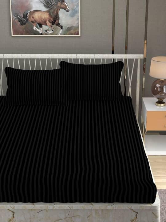 Solid satin stripe queen bedsheet with cotton feel and 2 pillow covers.