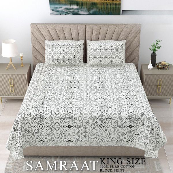 BLOCK PRINT KING SIZE BEDSHEET SET (1+2)